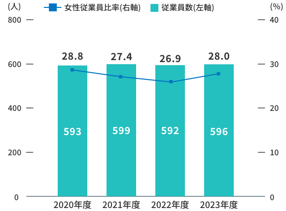 従業員数と女性比率の実績