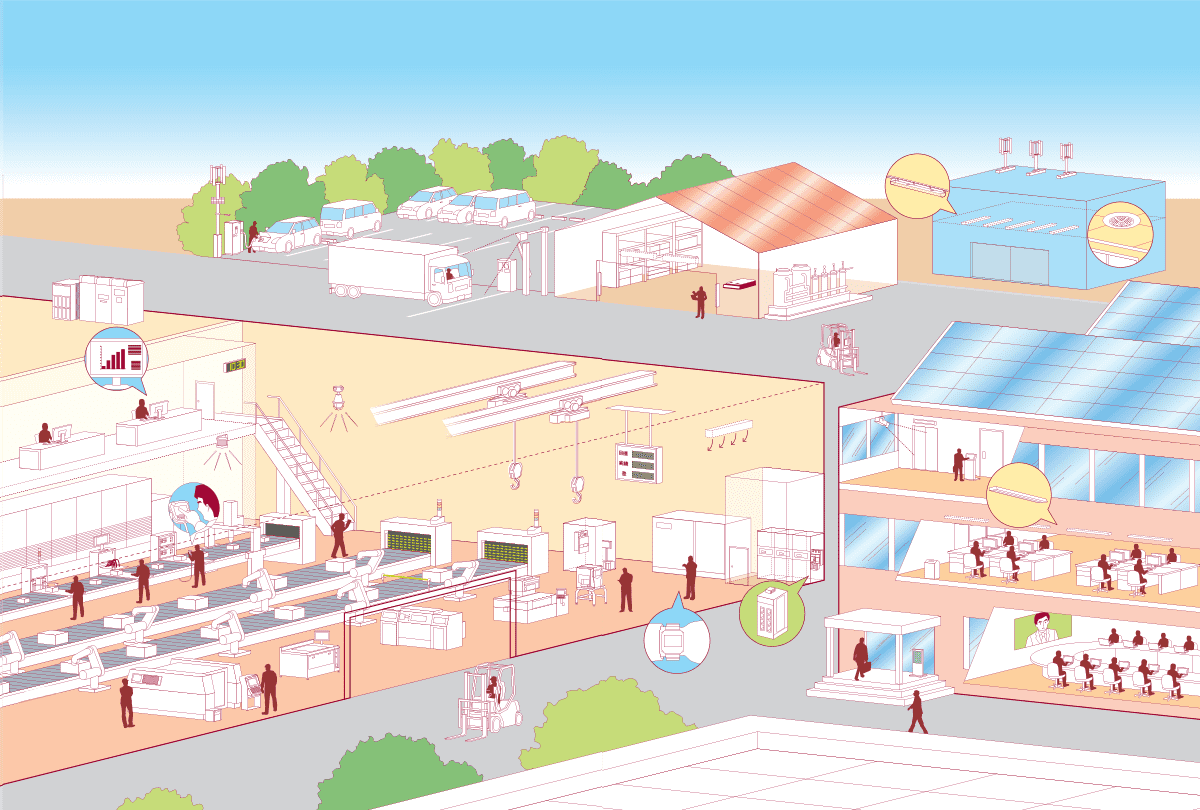 機械・装置単体から生産工場やプラント、ビル設備などの大規模な監視システムを構築することが可能です。