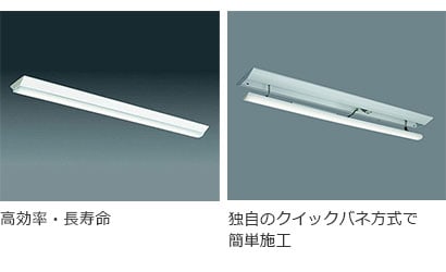 安全増防爆形・防爆形蛍光灯器具の代替としてお使いいただけます。業界最軽量・最高クラスの省エネ性に加え、乳白色カバーの採用によるグレア対策とRa83の高演色性の実現で、快適な作業環境をご提供します。